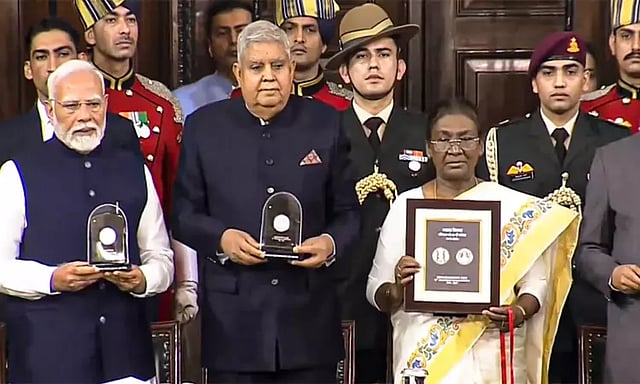 நாடு முழுவதும் இன்று இந்திய அரசியல் சாசன தினம் கொண்டாடப்படுகிறது. அரசியல் சாசனம் அமலுக்கு வந்து 75 ஆண்டு நிறைவு பெற்றதையொட்டி நாளுமன்றத்தில் சிறப்பு கொண்டாட்ட நிகழ்ச்சி நடந்தது. இந்த நிகழ்ச்சியில் ஜனாதிபதி திரவுபதி முர்மு, பிரதமர் மோடி, துணை ஜனாதிபதி ஜகதீப் தங்கர் மற்றும் மக்களவை சபாநாயகர் ஓம்பிர்லா உள்ளிட்டோர் கலந்து கொண்டனர்.