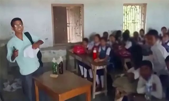 மேற்கு வங்காளம் அருகே மால்டா மாவட்டத்தில் உயர்நிலைப்பள்ளி ஒன்று உள்ளது. இந்த பள்ளிக்குள் மர்மநபர் ஒருவர் கைத்துப்பாக்கியுடன் அத்துமீறி நுழைந்தார். 8-ம் வகுப்பு நடக்கும் அறைக்குள் புகுந்த அவர் அங்கிருந்த ஆசிரியர், மாணவர்களை கொன்று விடுவதாக மிரட்டினார். இதனால் அவர்கள் செய்வதறியாது அச்சத்தில் அலறினர்.