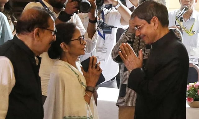 அப்போது கவர்னர் ஆர்.என். ரவியிடம் பேசிய மம்தா பானர்ஜி, “மேற்கு வங்காளம் சிறப்பாக இருக்கும். மேற்கு வங்காள கலாசாரம் வித்தியாசமானது. வங்காளத்தை யாருக்கு பிடிக்குமோ அவர்களைத்தான் மேற்கு வங்காள மக்களுக்கு பிடிக்கும்” என்று கூறினார்.