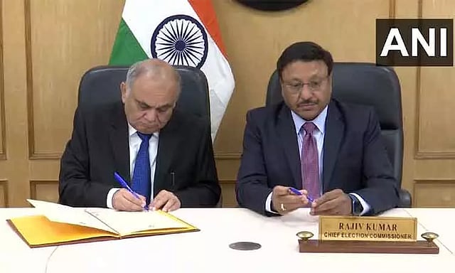 "இரு மாநில சட்டசபைகளின் பதவிக்காலம் முடிவதற்கு 40 நாட்கள் இடைவெளி உள்ளது. தேர்தல் விதிகளின்படி, ஒரு மாநில தேர்தலின் முடிவு மற்றொன்றை பாதிக்காத வகையில், இரண்டிற்கும் குறைந்தபட்சம் 30 நாட்கள் இடைவெளி இருக்க வேண்டும்.