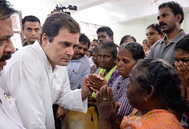 கேரளாவில் வெள்ளத்தினால் பாதிக்கப்பட்ட இடங்களை பார்வையிட காங்கிரஸ் தலைவர் ராகுல்காந்தி 2 நாள் பயணம் மேற்கொண்டுள்ளார். ஹெலிகாப்டர் மூலம் வெள்ள சேதங்களை பார்த்தப்படியே ஆலப்புழாவில் உள்ள செங்கண்ணூருக்கு சென்றார். அங்குள்ள கல்லூரிகளில் அமைக்கப்பட்டிருந்த நிவாரண முகாம்களில் தங்க வைக்கப்பட்டுள்ள மக்களை சந்தித்து பேசினார். அவர்களிடம் குறைகளையும் கேட்டறிந்தார். பாதிக்கப்பட்ட மக்கள் வெள்ளத்தால் தாங்கள் அனுபவித்த துயரங்களையும், பாதிப்புகளையும் கண்ணீர் மல்க அவரிடம் தெரிவித்தனர். அதை அவர் மிகுந்த கவனத்துடன் கேட்டுக்கொண்டார்.