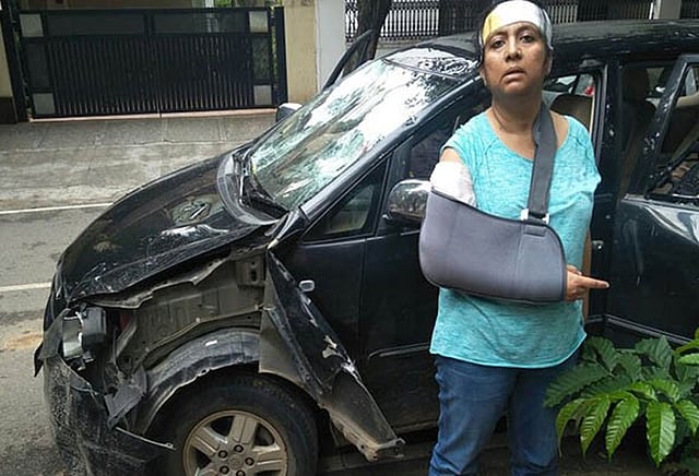 அங்கு போலீசார் யாரும் இல்லை. ஆனால் ஒரு பெரிய கும்பல் ஒன்று அங்கு திரண்டு இருந்துள்ளது. அவர்கள் கைகளில் பெரிய கற்கள் மற்றும் செங்கற்கள் இருந்துள்ளன. நந்தினி மற்றும் உடன் வந்தவர்களை திட்டி கொண்டே அவர்களது கார் மீது அந்த கும்பல் கற்களை வீசியுள்ளது. உடன் வந்த 2 போலீசார் தடுக்க முயன்றும் இந்த சம்பவத்தில் கார் சேதமடைந்து உள்ளது. நந்தினி மற்றும் செஜில் காயமடைந்துள்ளனர்.