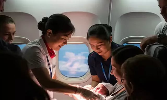 ஓமன் நாட்டின் தலைநகர் மஸ்கட்டில் இருந்து நேற்று முன்தினம் அதிகாலை ஏர்இந்தியா எக்ஸ்பிரஸ் விமானம் ஒன்று மும்பை நோக்கி வந்து கொண்டு இருந்தது. விமானம் அதிகாலை 3.15 மணியளவில் நடுவானில் பறந்து கொண்டு இருந்தபோது தாய்லாந்து நாட்டை சேர்ந்த கர்ப்பிணிக்கு திடீரென பிரசவ வலி ஏற்பட்டது.