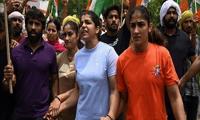 இந்திய மல்யுத்த சம்மேளன தலைவரும் பாஜக மந்திரியுமான பிரிஜ்பூஷண் சரண்சிங் மீது பாலியல் குற்றச்சாட்டு தெரிவித்த மல்யுத்த வீரர்கள், வீராங்கனைகள் கடந்த ஏப்ரல் 27ம் தேதி முதல் டெல்லி ஜந்தர் மந்தரில் போராட்டத்தில் ஈடுபட்டு வந்தனர். கடந்த ஞாயிற்றுக்கிழமை நாடாளுமன்ற புதிய கட்டிடம் திறப்பு விழாவின் போது மல்யுத்த வீரர், வீராங்கனைகள் பேரணியாக நாடாளுமன்றம் நோக்கி செல்ல முயன்றனர்.