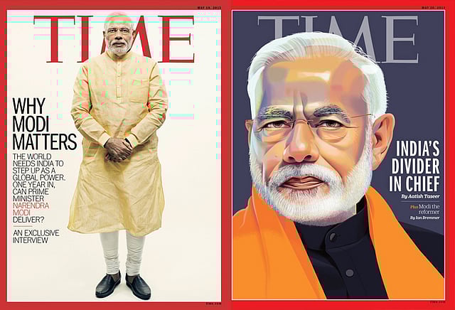 அமெரிக்காவில் இருந்து வெளியாகும் உலகப்புகழ் பெற்ற டைம் பத்திரிக்கை மே 20-ம் தேதியிட்ட டைம் இதழின் அட்டைப் படத்தில் பிரதமர் மோடி காவித் துண்டுடன் இருக்கும் மிகவும் ஒரு அழுத்தமான ஓவியம் இடம் பெற்றுள்ளது. அட்டைப் படத்தில் சர்ச்சைக்குரிய வகையில் தலைப்பு இடம்பெற்றுள்ளது. இந்தியாவில் மிகப்பெரிய அதிர்வலையை ஏற்படுத்தும் வகையில் இந்தியாவின் பிரித்தாளும் தலைவர் என வாசகம் இடம்பெற்றுள்ளது. மேலும் ஐந்து ஆண்டுகளும் மோடியின் ஆட்சியை சகித்துக் கொள்ளுமா? என்று துணை தலைப்பையும் வைத்துள்ளது.