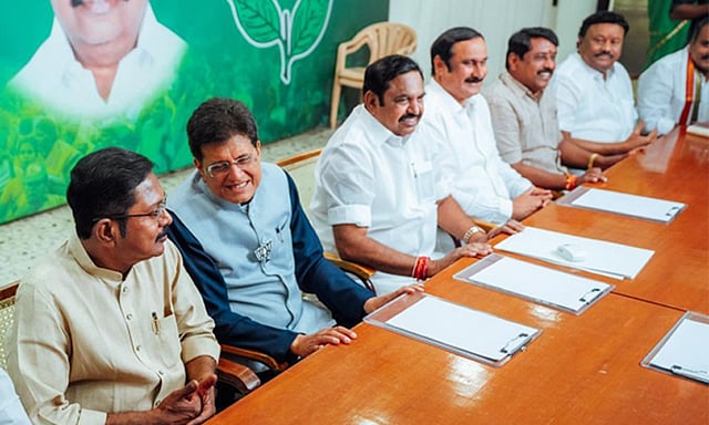 இந்த நிலையில், தமிழக பா.ஜ.க. மேலிட பொறுப்பாளர் பியூஷ் கோயல் இன்று சென்னை வந்துள்ளார். சென்னை விமான நிலையம் வந்த பியூஸ் கோயலை பாஜக தலைவர் நயினார் நாகேந்திரன், மத்திய இணை மந்திரி எல்.முருகன் உள்ளிட்டோர் வரவேற்றனர்.
