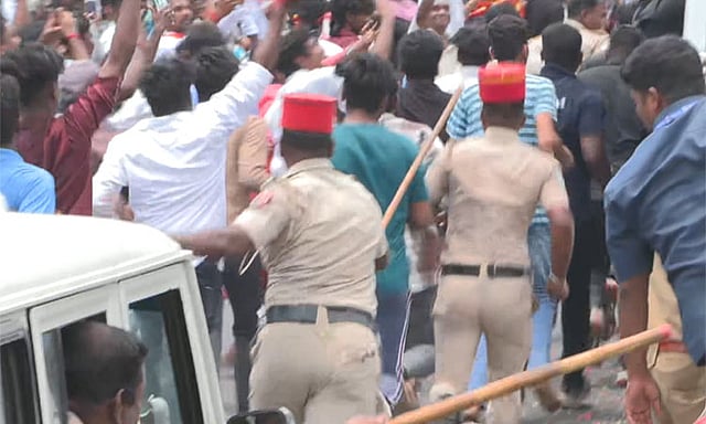 சில இடங்களில் விஜய்யை பார்த்து ஆர்வமிகுதியால் தொண்டர்கள் அவரது காரை சூழ்ந்தனர். ஆபத்தான முறையில் பைக்கில் விஜய்யின் வாகனத்தை பின்தொடர்ந்து வந்ததையும் காண முடிந்தது.அதேபோல், புதுச்சேரி கலாப்பட்டு முதல் தட்டாஞ்சாவடி வரை விஜய் ரோடு ஷோவாக வந்த போது, பிரசார வாகனத்தை இளைஞர்கள் சிலர் சூழ்ந்தனர். இதனால் விஜய் வாகனம் இன்ச் பை இன்ச் ஆக நகர்ந்தது. இதையடுத்து அங்கு பாதுகாப்பு பணியில் இருந்த போலீசார், இளைஞர்களை லேசான தடியடி நடத்தி விரட்டினர். இதனால் அங்கு சிறிது பரபரப்பு ஏற்பட்டது.
