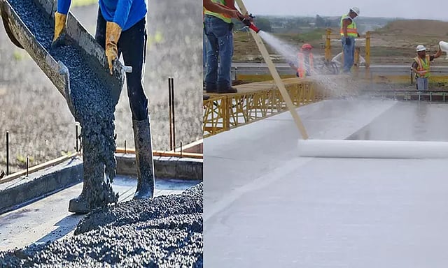 கான்கிரீட் தளத்தின் மேல் நீரைத்தேக்க பல வழிகள் பின்பற்றப்படுகின்றன. நீர் வெளியேறிப் போகாமல் இருக்க பாத்தி கட்டுவது, ஈர சாக்குகளை கொண்டு மூடி வைப்பது என்று இடத்துக்கு தகுந்தாற்போல் பின்பற்றப்படுகின்றன.