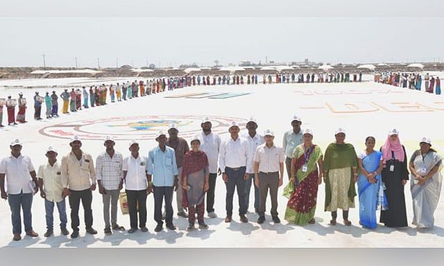 தமிழக சட்டமன்ற பொதுத்தேர்தல் 2026-ஐ முன்னிட்டு, தூத்துக்குடி மாவட்டம் விளாத்திக்குளம் சட்டமன்ற தொகுதிக்குட்பட்ட பகுதிகளில் வாக்காளர் விழிப்புணர்வு பணிகள் தீவிரமாக நடைபெற்று வருகின்றன. இதன் ஒரு பகுதியாக, வேப்பலோடை பகுதியில் உள்ள சகாயமாதா உப்பு நிறுவனத்தில் நேற்று உப்பளத் தொழிலாளர்களுக்கான விழிப்புணர்வு நிகழ்ச்சி நடைபெற்றது.