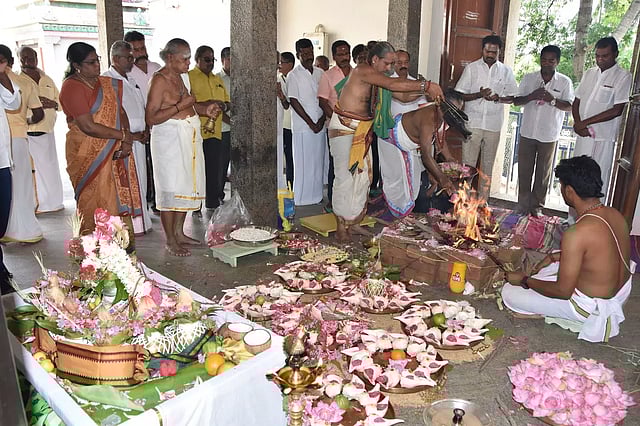 பழனி கோதைமங்கலம் அருகே சண்முகநதி கரையோரத்தில் பெரியாவுடையார் கோவில் அமைந்துள்ளது. பழனி முருகன் கோவிலின் உபகோவிலான இங்கு பிரதோஷம், விசேஷ நாட்களில் பக்தர்கள் வருகை அதிகமாக இருக்கும். இந்நிலையில் நேற்று பெரியாவுடையார் கோவிலில் வருடாபிஷேகம் நடந்தது. இதையொட்டி கலச பூஜை, விநாயகர் பூஜை, பூர்ணாகுதி மற்றும் சிறப்பு யாகம் நடைபெற்றது. தொடர்ந்து கோவில் கலசம் வெளிப்பிரகாரம், உட்பிரகாரங்களில் சுற்றி கொண்டு வரப்பட்டு சிறப்பு பூஜை நடந்தது.