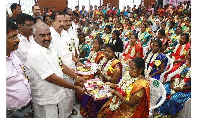 விழுப்புரத்தில் ஒருங்கிணைந்த குழந்தைகள் வளர்ச்சி திட்டத்தின் சார்பில் சமுதாய வளைகாப்பு விழா நடைபெற்றது. இதற்கு கலெக்டர் மோகன் தலைமை தாங்கினார். சட்டமன்ற உறுப்பினர்கள் புகழேந்தி, .சிவக்குமார், நாடாளுமன்ற உறுப்பினர் ரவிக்குமார் ஆகியோர் முன்னிலை வகித்தனர். சிறப்பு அழைப்பாளர்களாக உயர்கல்வித்துறை அமைச்சர் க.பொன்முடி, தமிழர் நலத்துறை அமைச்சர் செஞ்சி மஸ்தான் ஆகியோர் கலந்து கொண்டு 12,176 கர்ப்பிணிகளுக்கு சீர்வரிசை பொருட்கள் மற்றும் 5 வகையான ஊட்டச்சத்து உணவுகளை வழங்கினர்.