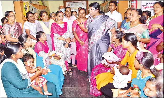 மேலும் அவர் ஊட்டச்சத்து குறித்த மாதாந்திர முகாமையும் பார்வையிட்டு, தாய்மார்களிடம் ஊட்டச்சத்து குறித்து பேசினார்.