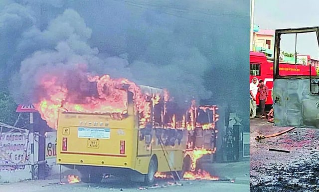 டிரைவர் சாதுர்யமாக செயல்பட்டு மாணவர்களை இறக்கிவிட்டதால், அதிர்ஷ்டவசமாக உயிர் தப்பியதுடன், பெரும் அசம்பாவிதமும் தவிர்க்கப்பட்டது.