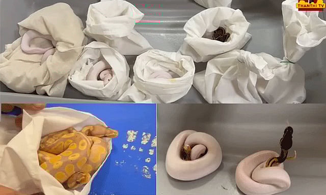 எந்த விதமான சான்றிதழும் இல்லாமல் அவற்றை கொண்டு வந்த அந்த சென்னை நபரை சுங்கத்துறை அதிகாரிகள் கைது செய்தனர். தொடர்ந்து, பெசன்ட் நகரில் உள்ள வனவிலங்கு பாதுகாப்புப் குற்றப்பிரிவு போலீசார், விரைந்து வந்து ஆய்வு செய்தனர். அப்போது அந்த கூடைகளில் இருந்தவை பால் பைத்தான் என்னும் அரியவகையைச் சேர்ந்த மலைப்பாம்புகள் என்பது தெரியவந்தது. இவைகள் வட அமெரிக்கா உள்ளிட்ட வெளிநாடுகளில் அடர்ந்த வனப்பகுதிகளில் குளிர் பிரதேசங்களில் வாழும் உயிரினங்களாகும்.