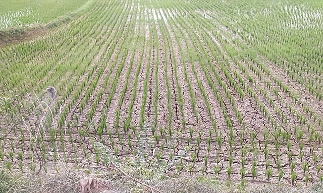 இதனால் கடந்த 2 ஆண்டுகளாக விவசாய நிலங்கள் தரிசாக மாறி செடி, கொடிகள் வளர்ந்து நிற்கின்றன. மேலும் மழையை நம்பி தற்போது சாகுபடி செய்த சம்பா நெற்பயிரும் தண்ணீரின்றி வெயிலில் கருகி வருகிறது. சாகுபடி செய்த விவசாய நிலங்கள் பாளம், பாளமாக வெடித்து காய்ந்து கிடப்பதை பார்க்க முடிகிறது. தங்கள் கண் எதிரே சாகுபடி செய்த நெற்பயிர்கள் கருகி வருவதை விவசாயிகள் பார்த்து கண்ணீர் வடித்து கவலையில் மூழ்கி வருகிறார்கள்.