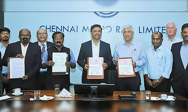 சென்னை நந்தனத்தில் உள்ள மெட்ரோ ரெயில் தலைமை அலுவலகத்தில் நேற்று நடந்த நிகழ்ச்சியில், மெட்ரோ ரெயில் நிறுவனத்தின் இயக்குனர் அர்ச்சுனன் (திட்டங்கள்) மற்றும் டாடா பிராஜெக்ட்ஸ் நிர்வாக துணைத்தலைவர் ராமன் கபீல் ஆகியோர் ஒப்பந்தத்தில் கையெழுத்திட்டனர். அப்போது, மெட்ரோ ரெயில் நிலையத்தின் உயர் அதிகாரிகள் உடன் இருந்தனர்.