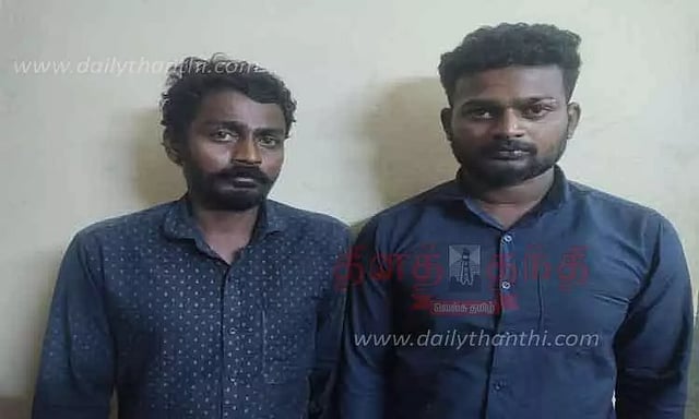 இது குறித்த தகவல் அறிந்த தென்காசி இன்ஸ்பெக்டர் பாலமுருகன், சப்-இன்ஸ்பெக்டர் விஜயகுமார் மற்றும் போலீசார் அங்கு சென்று அவர்கள் 2 பேரிடம் விசாரணை நடத்தினர். அதில் அவர்கள் நெற்கட்டும் செவல் ஊரைச் சேர்ந்த மாரிசாமி மகன் முத்துக்குமார் (வயது 26), கிருஷ்ணன் மகன் சுப்பையா (36) ஆகியோர் என்பது தெரியவந்தது. அவர்களை போலீசார் கைது செய்தனர்.