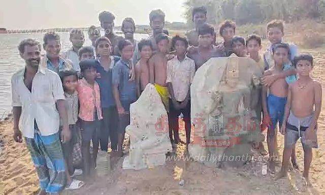 அரியலூர் மாவட்டம் திருமானூர் ஒன்றியத்துக்குட்பட்ட பெரியமறை கிராமத்தில் உள்ள கொள்ளிடம் ஆற்றில் வாலிபர்கள் சிலர் நேற்று குளித்துக் கொண்டிருந்தனர். அப்போது அவர்களது காலில் தென்பட்ட கல்லை எடுத்து பார்த்தபோது அது 4 அடி உயரம் கொண்ட தட்சிணாமூர்த்தி சிலை என்பது தெரியவந்தது. மேலும் அருகிலேயே 3 அடி உயரம் கொண்ட அம்மன் சிலை இருப்பதும் தெரியவந்தது. பின்னர் அந்த சிலைகளை கரைக்கு எடுத்து வந்தனர். இதுகுறித்து வருவாய் துறையினருக்கு அப்பகுதி மக்கள் தகவல் தெரிவித்தனர். இதையடுத்து அதிகாரிகள் அந்த சிலைகளை கைப்பற்றி அரியலூர் ஆர்.டி.ஓ. அலுவலகத்திற்கு கொண்டு செல்ல முயன்றனர். அப்போது கிராமமக்கள் கூறுகையில், இந்த பகுதியில் இன்னும் ஏராளமான சிலைகள் இருக்க வாய்ப்பு உள்ளது. எனவே இந்த சிலைகளை கண்டெடுத்து பாதுகாக்க வேண்டும் என்று கூறினர். மேலும் தற்போது கண்டெடுக்கப்பட்ட 2 சிலைகளையும் எங்கள் ஊர் கோவிலிலே வைத்துக் கொள்கிறோம். எனவே இந்த சிலைகளை எங்களிடம் ஒப்படைக்குமாறு கோரிக்கை விடுத்தனர். அதற்கு வருவாய்த்துறை அதிகாரிகள் இந்த 2 சிலைகளையும் நாங்கள் மாவட்ட நிர்வாகத்திடம் ஒப்படைக்கிறோம். தாங்கள் இந்த சிலைகளை கோவிலில் வைத்துக்கொள்வதாக கலெக்டரிடம் மனு கொடுத்து பெற்று செல்லுமாறு அறிவுரை கூறினர்.