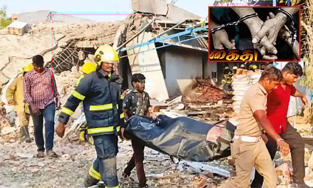 சில தினங்களுக்கு முன்பு பட்டாசு ஆலை உரிமையாளரின் கணவர் முத்துமாணிக்கம் நீதிமன்றத்தில் சரண் அடைந்தார். மேலும் அவருக்கு அடைக்கலம் கொடுத்த உறவினர்கள் முத்துராஜ், வைரமுத்து உள்ளிட்ட மூன்று பேர் ஏற்கனவே கைது செய்யப்பட்டு இருக்கின்றனர்.