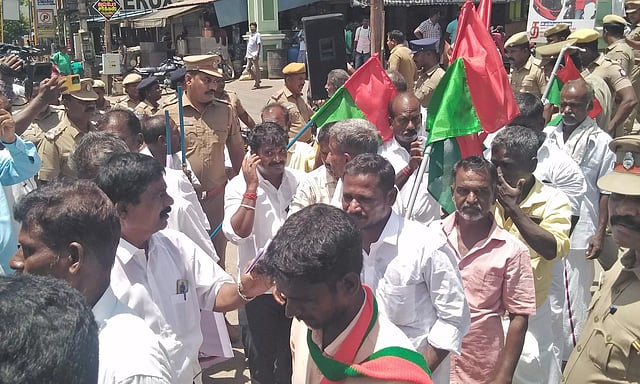 இந்த போராட்டத்தையொட்டி புதிய பஸ் நிலையம் அருகே உள்ள 2 டாஸ்மாக் கடைகள் முன்பு பாதுகாப்பு பணிக்காக போலீசார் குவிக்கப்பட்டிருந்தனர். மேலும் அந்த வழியாக செல்லக்கூடிய சாலையில் இரும்பு தடுப்புகள் வைத்து தடுத்திருந்தனர். போராட்டம் முடிந்த பின்பு சிறிது நேர தாமதத்திற்கு பின் டாஸ்மாக் கடைகள் திறக்கப்பட்டன.