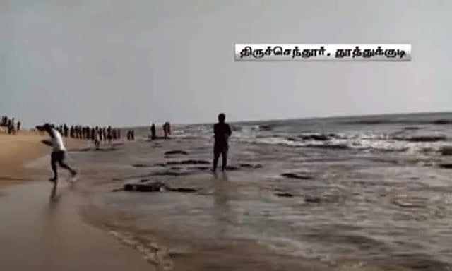 இந்த நிலையில் திருச்செந்தூரில் இன்று 2-வது நாளாக 50 அடி தூரத்திற்கு கடல் உள்வாங்கியது. இதனால் கடலில் உள்ள பாறைகள் வெளியே தெரியத் தொடங்கின. அவற்றின் மீது நின்று பக்தர்கள் புகைப்படங்களை எடுத்துச் சென்றனர். அமாவாசை மற்றும் பௌர்ணமி நாட்களில் திருச்செந்தூரில் கடல் உள்வாங்கிவிட்டு, பின்னர் இயல்பு நிலைக்கு திரும்பும் என்பது குறிப்பிடத்தக்கது.