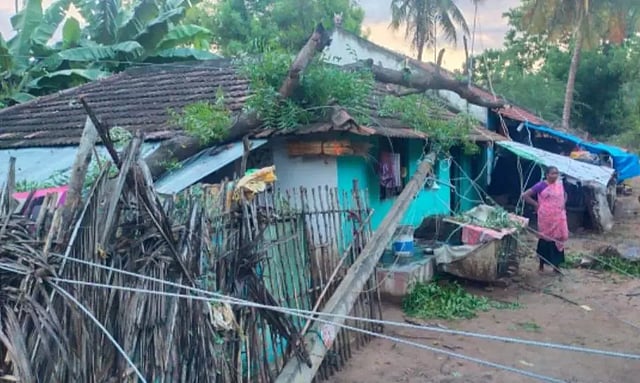மின்கம்பங்கள் சாய்ந்ததில் பாதிக்கப்பட்ட குடும்பத்தினருக்கு உரிய நிவாரணம் வழங்க வேண்டும் என அப்பகுதி மக்கள் கோரிக்கை விடுத்து உள்ளனர்.
