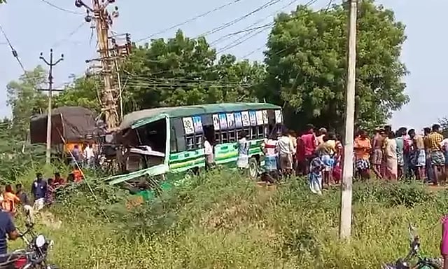 அரியலூர் மாவட்டம் சுந்தரேசபுரம் அருகே அரசுப்பேருந்து ஒன்று, முன்னால் சென்ற லாரி மீது மோதி விபத்துக்குள்ளானது. இந்த விபத்தில், பேருந்தில் பயணம் செய்த 30-க்கும் மேற்பட்டோர் லேசான காயம் அடைந்தனர். காயமடைந்தோர் ஆம்புலன்ஸ் மூலம் அருகில் உள்ள மருத்துவமனைக்கு கொண்டு செல்லப்பட்டுள்ளனர். அங்கு அவர்களுக்கு சிகிச்சை அளிக்கப்பட்டு வருகிறது.