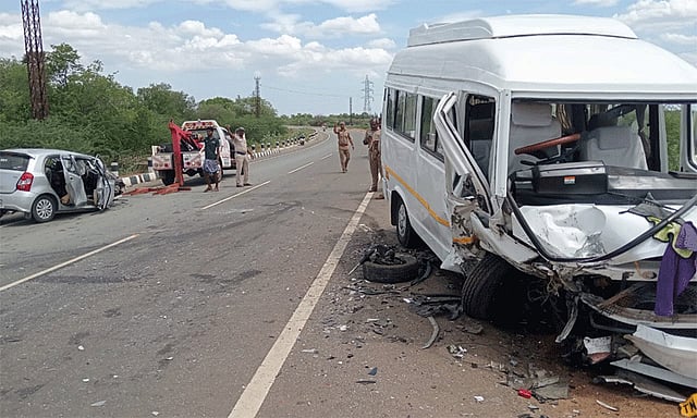 மலேசிய நாட்டில் இருந்து தமிழ்நாட்டிற்கு ஆன்மிக சுற்றுலா வந்த 12 பேர் ராமநாதபுரம் மாவட்டம் ராமேசுவரத்தில் இருந்து திருச்சிக்கு டெம்போ வேனில் சென்று கொண்டிருந்தனர். வேனை மதுரையைச் சேர்ந்த ஓட்டுநர் கந்தையா (40) ஓட்டினார்.