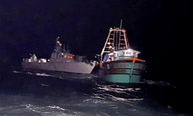 இலங்கை கடற்படை ரோந்து படகு மோதி ராமேஸ்வரம் விசைப்படகு நடுக்கடலில் மூழ்கி மீனவர்கள் மாயமாகி உள்ளனர். நள்ளிரவு மீன் பிடித்துக்கொண்டிருந்தபோது ரோந்து படகு மோதி ராமேஸ்வரம் மீனவர்களின் படகு மூழ்கியதாக கூறப்படுகிறது. படகு நடுக்கடலில் மூழ்கியதில் படகில் இருந்த 4 ராமேஸ்வரம் மீனவர்கள் நிலை என்ன என்பது தெரியவில்லை.