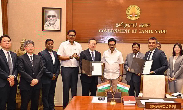தமிழ்நாடு முதலமைச்சர் மு.க.ஸ்டாலின் முன்னிலையில் இன்று (16.02.2026) தலைமைச் செயலகத்தில் தொழில், முதலீட்டு ஊக்குவிப்பு மற்றும் வர்த்தகத் துறை சார்பில் நடைபெற்ற நிகழ்ச்சியில், ஜப்பான் நாட்டைச் சேர்ந்த மினிபியா மிட்சுமி நிறுவனத்தின் துணை நிறுவனமான NMB மினிபியா இந்தியா பிரைவேட் லிமிடெட் 1,980 கோடி ரூபாய் உறுதியளிக்கப்பட்ட முதலீட்டில், 1,400 நபர்களுக்கு உறுதியளிக்கப்பட்ட வேலைவாய்ப்பு அளிக்கும் வகையில், திருவள்ளூர் மாவட்டத்தில் செமிகண்டக்டர், மின் உபகரணங்கள், மோட்டார்கள் உற்பத்தி திட்டத்திற்கான புரிந்துணர்வு ஒப்பந்தமும்;