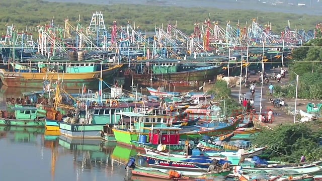 மீனவர்கள் மீன்பிடிக்க செல்லாததால் ஆயிரத்திற்கும் மேற்பட்ட பைபர் படகுகள் பாதுகாப்பாக நிறுத்தப்பட்டுள்ளது. அங்கு உள்ள கடற்கரை பகுதி வெறிச்சோடி காணப்பட்டது.