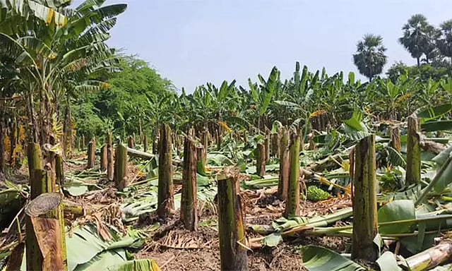 இந்த நிலையில், நவ்வலடியூ பகுதியில் உள்ள ஆறுமுகராஜாவின் தோட்டத்தில் 500-க்கும் மேற்பட்ட வாழைகள் மர்ம நபாகளால் நேற்று (வியாழக்கிழமை) வெட்டி சாய்க்கப்பட்டுள்ளன. இதுகுறித்து அவரது சகோதரர் இளையராஜா ஸ்ரீவைகுண்டம் காவல்நிலையத்தில் புகா அளித்துள்ளா. அதில், கொலை வழக்கில் தீர்ப்பு வெளியான நிலையில் இச்சம்பவம் நிகழ்ந்துள்ளது. எங்களது உயிருக்கும் பாதுகாப்பு இல்லாத நிலை உள்ளது. இதுகுறித்து உரிய நடவடிக்கை எடுக்க வேண்டும் எனக் கூறியுள்ளா. இதைத் தொடாந்து பாதிக்கப்பட்ட நபா வீட்டின் முன் 10-க்கும் மேற்பட்ட போலீசார் குவிக்கப்பட்டுள்ளனர். இதனால் அப்பகுதியில் பரபரப்பு ஏற்பட்டுள்ளது.