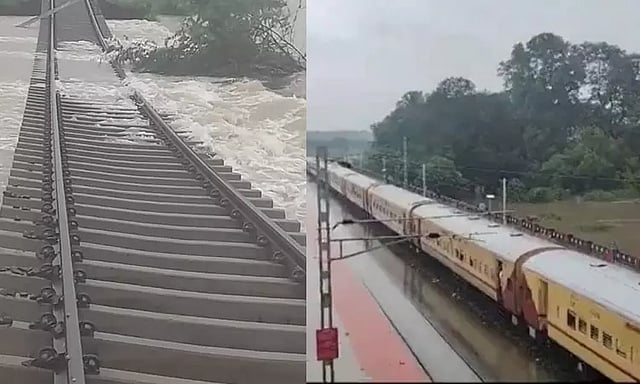 அந்த மாவட்டங்களில் உள்ள ரெயில் பாதைகளின் பல்வேறு பகுதிகளில் மண் அரிப்பு ஏற்பட்டுள்ளது. இதன் காரணமாக பல்வேறு பகுதிகளில் தண்டவாளங்கள் அந்தரத்தில் தொங்கி கொண்டு இருப்பதால் ரெயில் போக்குவரத்து தடை செய்யப்பட்டுள்ளது.