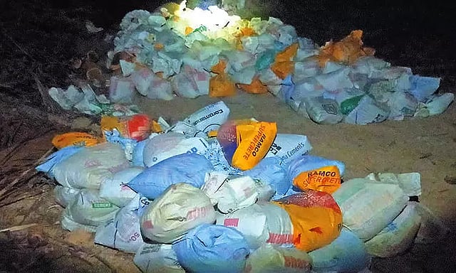 திருவாலங்காடு ஒன்றியம் வெங்கடாபுரம் அருகே கொசஸ்தலை ஆற்றிலிருந்து இரவு நேரங்களில் கூலி ஆட்கள் வைத்து மூட்டைகளில் மணல் கடத்தப்படுவதாக சிவ்வாடா கிராம நிர்வாக அலுவலர் பவதரணிக்கு ரகசிய தகவல் கிடைத்தது. இதுகுறித்து அவர் திருத்தணி தாசில்தார் வெண்ணிலாவிற்கு தகவல் தெரிவித்தார். அவரின் உத்தரவின் படி நேற்று இரவு வருவாய் துறையினர் வெங்கடாபுரத்திலிருந்து இல்லத்தூருக்கு செல்லும் சாலை அருகே கொசஸ்தலை ஆற்றில் மூட்டைகளில் மணல் நிரப்பி அந்த பகுதியில் உள்ள கரும்பு தோட்டத்தின் அருகே பதுக்கி வைத்திருந்ததை கண்டுபிடித்தனர்.