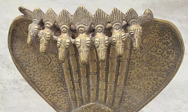 ரிஷிவந்தியம் அருகே கடம்பூர் கிராமத்தில் உள்ள அய்யனார் கோவிலுக்கு செல்லும் சாலையோர புறம்போக்கு நிலத்தில் நேற்று காலை மண்ணில் பாதி புதைந்த நிலையில் உலோகத்திலான 7 தலைகள் கொண்ட நாக சிலை ஒன்று இருந்தது.