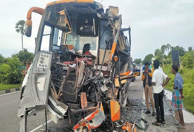 திண்டிவனத்தில் இருந்து ஆம்னி பஸ் சென்னை நோக்கி வந்து கொண்டிருந்தது. நேற்று காலை சென்னை- திருச்சி தேசிய நெடுஞ்சாலை செங்கல்பட்டு மாவட்டம் மதுராந்தகத்தை அடுத்த பாக்கம் என்ற இடத்தில் வரும்போது டிரைவரின் கட்டுப்பாட்டை இழந்து சாலையோரம் நின்று கொண்டிருந்த லாரியின் பின்னால் மோதியது. இதில் 4 பெண்கள் உள்பட 7 பேர் படுகாயம் அடைந்தனர்.