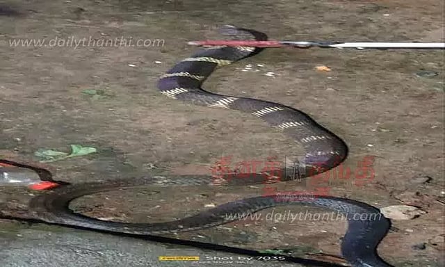 செங்கோட்டை அருகே உள்ள தெற்கு மேடு கிராமத்தை சேர்ந்தவர் மாடசாமி. விவசாயியான இவரது வீட்டில் வாசல் பக்கம் இரும்பு பீரோவில் துணிகளை வைத்து உள்ளார். நேற்று காலையில் மாடசாமி பிரோவை திறக்க முயன்றபோது பீரோவிற்கு அடியில் ஏதோ சத்தம் வந்தது. அவர் பார்த்தபோது, ராஜநாகம் பதுங்கி இருப்பதை கண்டு அதிர்ச்சி அடைந்தார்.