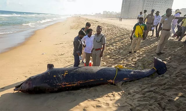 சென்னை பட்டினப்பாக்கம் கடற்கரையில் இன்று மதியம் இறந்த நிலையில் சுமார16 அடி நீளம் கொண்ட அரிய வகை பெண் டால்பின் ஒன்று கரை ஒதுங்கியது. அப்போது கடற்கரை பகுதியில் இருந்த பொதுமக்கள், பட்டினப்பாக்கம் காவல் துறையினர் மற்றும் கிண்டி சரக வனத் துறையினர் ஆகியோருக்கு தகவல் தெரித்தனர்.