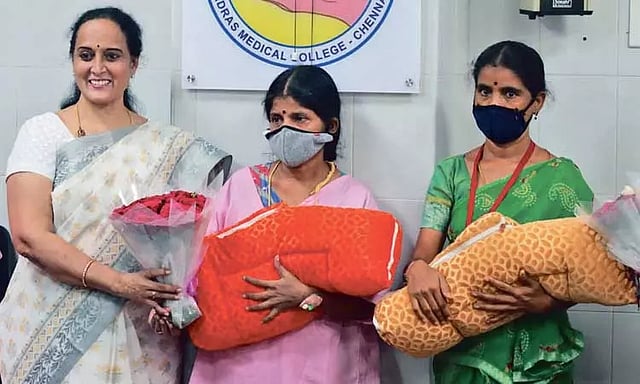 எழும்பூர் அரசு மகப்பேறு ஆஸ்பத்திரியில் நவீன மருத்துவ உபகரணங்கள் உதவியுடன் தொடர்ந்து சிறப்பாக சிகிச்சைகள் அளிக்கப்பட்டு வருகின்றன. அந்தவகையில் முதல் முறையாக 50 வயது கர்ப்பிணி பெண்ணுக்கு சிறப்பான சிகிச்சை அளிக்கப்பட்டு பிரசவத்தில் இரட்டை குழந்தைகள் பிறந்தது சாதனைக்குரியது. ராதிகா மற்றும் வள்ளி ஆகிய இருவரும் தொடர்ந்து 24 மணி நேரமும் தீவிர கண்காணிப்பில் இருந்தனர்.