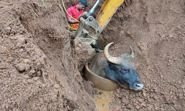 குன்னூர் சுற்றுவட்டார பகுதிகளில் சமீபகாலமாக காட்டெருமைகள் நடமாட்டம் அதிகரித்து உள்ளது. இவை உணவு மற்றும் தண்ணீர் தேடி தேயிலை தோட்டங்கள் மற்றும் குடியிருப்பு பகுதிகளில் உலா வந்த வண்ணம் உள்ளன. இந்தநிலையில் குன்னூர் அருகே பெரிய வண்டிசோலை பகுதியில் உள்ள தனியார் தேயிலை தோட்டத்தில் கட்டுமான பணிகள் நடைபெற்று வருகிறது. அங்கு வடமாநில தொழிலாளர்கள் தங்கி பணிபுரிந்து வருகின்றனர். இதற்காக தற்காலிக கழிவுநீர் தொட்டி அமைக்கப்பட்டு உள்ளது. நேற்று அப்பகுதிக்கு உணவு தேடி காட்டெருமை ஒன்று வந்தது. பின்னர் காட்டெருமை தவறி கழிவுநீர் தொட்டியில் விழுந்து உயிருக்கு போராடி கொண்டிருந்தது. உடனே அங்கு பணிபுரிந்த தொழிலாளர்கள் வனத்துறை மற்றும் தீயணைப்புத் துறையினருக்கு தகவல் தெரித்தனர். உடனே சம்பவ இடத்திற்கு விரைந்து வந்த வனத்துறையினர் மற்றும் தீயணைப்புத்துறையினர் காட்டெருமையை மீட்கும் பணியில் முயற்சியில் ஈடுபட்டனர். பொக்லைன் எந்திரம் உதவியுடன், 4 மணி நேரம் போராடி காட்டெருமையை பத்திரமாக உயிருடன் மீட்டனர். இதனால் அப்பகுதியில் பரபரப்பு ஏற்பட்டது.