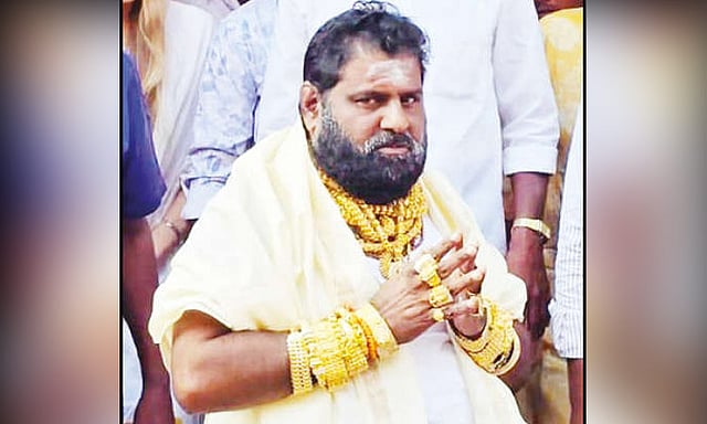 இவர் துபாயில் ஓட்டல் நடத்தி வருவதாக கூறப்படுகிறது. அப்போது அவர் கழுத்து மற்றும் கை நிறைய சுமார் 3 கிலோ எடை கொண்ட தங்க நகைகள் அணிந்தபடி வந்தார். கோவிலில் இருந்த பக்தர்கள் அவரை ஆச்சரியத்துடன் பார்த்தனர்.