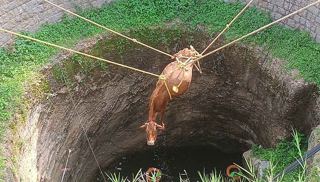 பின்னர் கிணற்றில் பார்த்தபோது, பசு தண்ணீரில் தத்தளித்துக் கொண்டிருந்தது. உடனே அங்கிருந்த இளைஞர்கள் கிணற்றுக்குள் குதித்து பசுவை கிணற்றின் திட்டு பகுதிக்கு கொண்டு சென்றனர். அதன்பின்னர் வேடசந்தூர் தீயணைப்புத் துறையினருக்கு தகவல் தெரிவிக்கப்பட்டது. சம்பவ இடத்திற்கு வந்த தீயணைப்பு நிலைய அலுவலர் ஜேம்ஸ் அருள் பிரகாஷ் தலைமையிலான வீரர்கள் கிணற்றில் இறங்கி கயிறு கட்டி பசுவை உயிருடன் மீட்டனர். இந்த சம்பவத்தால் அப்பகுதியில் சிறிது நேரம் பரபரப்பு ஏற்பட்டது.