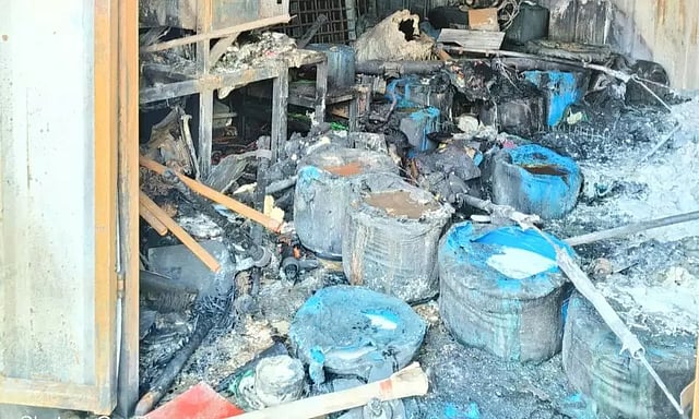திருக்கோவிலூர் செவலை சாலையில் உள்ள திருக்கோவிலூர் நகராட்சி அலுவலக வளாகத்தில் நகராட்சியின் துப்புரவு பிரிவுக்கான சேமிப்பு குடோன் உள்ளது. இந்த குடோனில் நேற்று முன்தினம் இரவு திடீர் தீ விபத்து ஏற்பட்டது. தகவல் அறிந்து வந்த திருக்கோவிலூர் நிலைய தீயணைப்பு அலுவலர் ரமேஷ் தலைமையில் தீயணைப்பு வீரர்கள் விரைந்து வந்து சுமார் ஒரு மணி நேரம் போராடி தீயை அணைத்தனர். இ்நத தீ விபத்தில் பிளீச்சிங் பவுடர், பினாயில், கொசு மருந்து மற்றும் கொசு மருந்து அடிக்கும் எந்திரம் ஆகியவை எரிந்து சாம்பலானது. இதன் மதிப்பு ரூ.15 லட்சம்இருக்கும் என கூறப்படுகிறது. தீ விபத்து பற்றிய தகவல் அறிந்த திருக்கோவிலூர் நகர மன்ற தலைவர் டி.என்.முருகன், ஆணையாளர் கீதா, துணை தலைவர் உமா மகேஸ்வரி குணா மற்றும் கவுன்சிலர்கள் தீ விபத்து நடந்த குடோனை பார்வையிட்டனர். மின்கசிவு காரணமாக இந்த தீ விபத்து நிகழ்ந்து இருக்கலாம் என கூறப்படுகிறது. இதுகுறித்து நகராட்சி நிர்வாகம் சார்பில் கொடுக்கப்பட்ட புகாரின் பேரில் திருக்கோவிலூர் போலீசார் வழக்குப்பதிவு செய்து தீ விபத்துக்கான காரணம் குறித்து தீவிர விசாரணை நடத்தி வருகிறார்கள்.