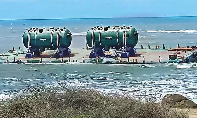 இதற்கிடயே, கூடங்குளம் பகுதியில் கடலில் நீராவி ஜெனரேட்டர்கள் ஏற்றப்பட்ட மிதவை கப்பல் தரை தட்டி நிற்கம் காட்சி சமூக வலைதளங்களில் பரவி வருகிறது. இது பெரும் பரபரப்பை ஏற்படுத்தி உள்ளது.