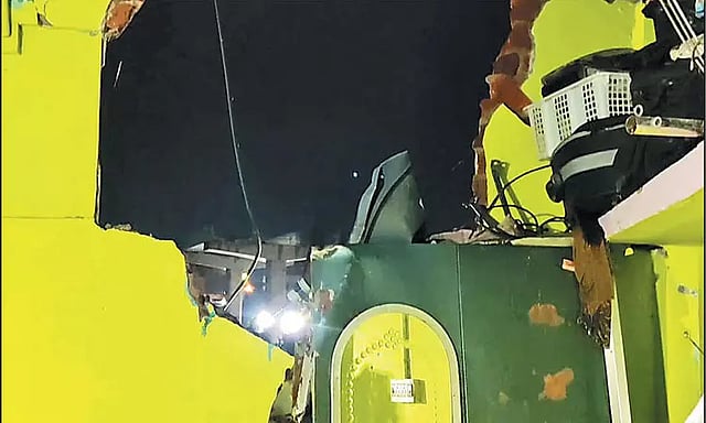 ராட்சத எந்திரம் மோதியபோது பயங்கர சத்தம் கேட்டதால் பூகம்பம் வந்துவிட்டதாக நினைத்து அருகே இருந்த வீடுகளில் வசிப்பவர்களும் அலறி அடித்து வெளியே ஓடிவந்து பார்த்தனர்.