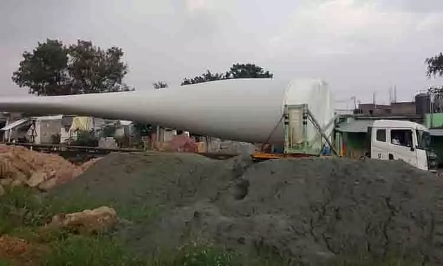 பெங்களூருவில் இருந்து மதுரைக்கு சுமார் 400 அடி நீளத்தில் காற்றாலை விசிறி ஒன்றை ஏற்றி கொண்டு லாரியில் வந்து கொண்டிருந்தது. அந்த லாரி கரூர் மாவட்டம் தவிட்டுப்பாளையம் போலீஸ் சோதனை சாவடி அருகே வந்துபோது, சாலை வளைந்து சென்றதால் திரும்ப முடியாமல் நின்றது. இதனால் பின்னர் வந்த மற்ற வாகனங்கள் அணி வகுத்து நின்றன. இதனால் அந்த பகுதியில் சுமார் அரை மணி நேரம் கடும் போக்குவரத்து நெரிசல் ஏற்பட்டது. நீண்ட நேர போராட்டத்திற்கு பிறகு லாரி மெதுவாக அங்கிருந்து நகர்ந்து சென்றது.