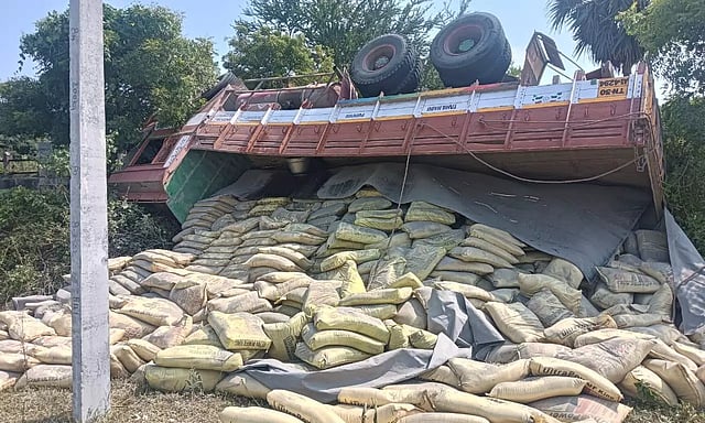 நேற்று முன்தினம் காலை கண்டாச்சிபுரம்- முகையூர் பிரதான சாலையில் பம்பகரை அரசு மதுபானக் கடை அருகே வந்த போது எதிரே வந்த நான்கு சக்கர வாகனம் மீது மோதாமல் இருப்பதற்காக ஜெயச்சந்திரன் லாரியை சாலையோரமாக ஒதுங்க முயன்றபோது எதிர்பாராதவிதமாக சாலையோர பள்ளத்தில் கவிழ்ந்து விபத்துக்குள்ளானது. இதில் லாரியில் இருந்த சிமெண்டு மூட்டைகள் அனைத்தும் கீழே பரவி கிடந்தது. மேலும் டிரைவர் ஜெயச்சந்திரனுக்கு காலில் எலும்பு முறிவும், கிருஷ்ணராஜிக்கு லேசான காயமும் ஏற்பட்டது. உடனே அவர்கள் இருவரையும் அப்பகுதியை சோந்த மக்கள் மீட்டு சிகிச்சைக்காக முண்டியம்பாக்கம் அரசு மருத்துவக்கல்லூரி மருத்துவமனைக்கு அனுப்பி வைத்தனர். இது குறித்த தகவல் அறிந்த கண்டாச்சிபுரம் போலீசார் சம்பவ இடத்திற்கு விரைந்து சென்று விபத்துக்குள்ளான லாரியை அப்புறப்படுத்தி போக்குவரத்தை சரி செய்தனர். மேலும் இது தொடர்பாக போலீசார் வழக்குப்பதிவு செய்து விசாரணை நடத்தி வருகின்றனர்.