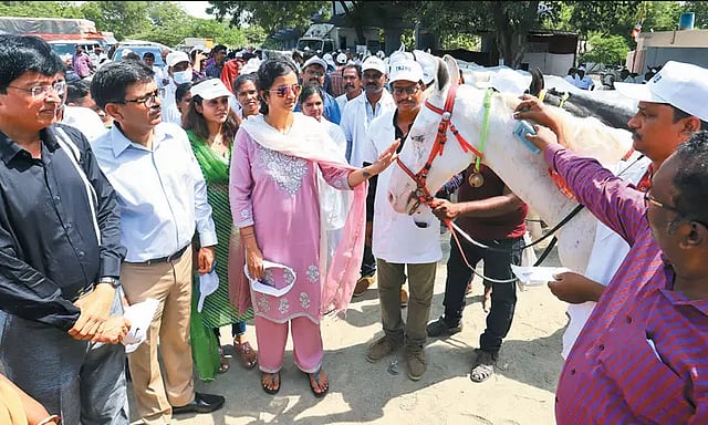 இதையடுத்து தமிழ்நாடு விலங்குகள் நல வாரியம், கால்நடை வளர்ப்பு மற்றும் கால்நடை அறிவியல் துறை, தமிழ்நாடு கால்நடை பல்கலைக்கழகம், தமிழ்நாடு போலீஸ் துறை, பெருநகர சென்னை மாநகராட்சி மற்றும் தன்னார்வ தொண்டு நிறுவனங்கள் ஆகியவை இணைந்து சென்னை சேப்பாக்கம்-திருவல்லிக்கேணி தொகுதியில் இந்த குதிரைகளுக்கு மருத்துவ முகாம் நேற்று நடத்தப்பட்டது.