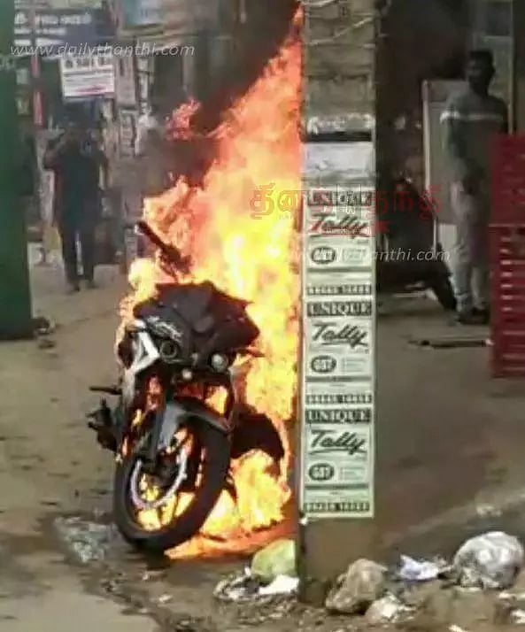 மேலும் இதுகுறித்து பவானி போலீசார் வழக்குப்பதிவு செய்து விசாரணை நடத்தினர். அதில் பெட்ரோல் டேங்க்கில் இருந்து கசிவு ஏற்பட்டுள்ளது. எப்படியோ அதில் தீப்பற்றிக்கொண்டது தெரியவந்துள்ளது. தொடர்ந்து போலீசார் விசாரணை நடத்தி வருகின்றனர்.