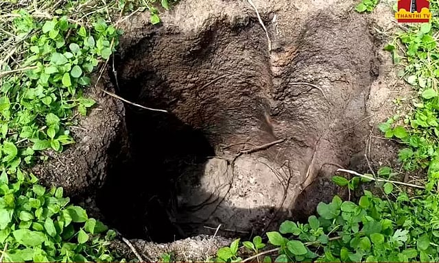 இதை அந்த பகுதியைச் சேர்ந்த திருமலை என்பவர் பார்த்துள்ளார். ஆனால் ஏதோ சாதாரண பள்ளம் என்று நினைத்து விட்டுவிட்டதாக தெரிகிறது. இந்த நிலையில் மீண்டும் அதே இடத்திற்கு சென்ற திருமலை, அந்தப் பள்ளத்தை பார்க்கும்போது அதிலிருந்து அதிக வெப்ப அனல் வெளியாகியுள்ளது. இதுகுறித்து அப்பகுதி மக்களிடம் அவர் கூறியுள்ளார். இதையடுத்து அந்த பள்ளத்தின் முன்பு குவிந்த மக்கள், அந்த மர்ம பொருள் என்னவென்று தெரியாமல் பீதி அடைந்தனர்.